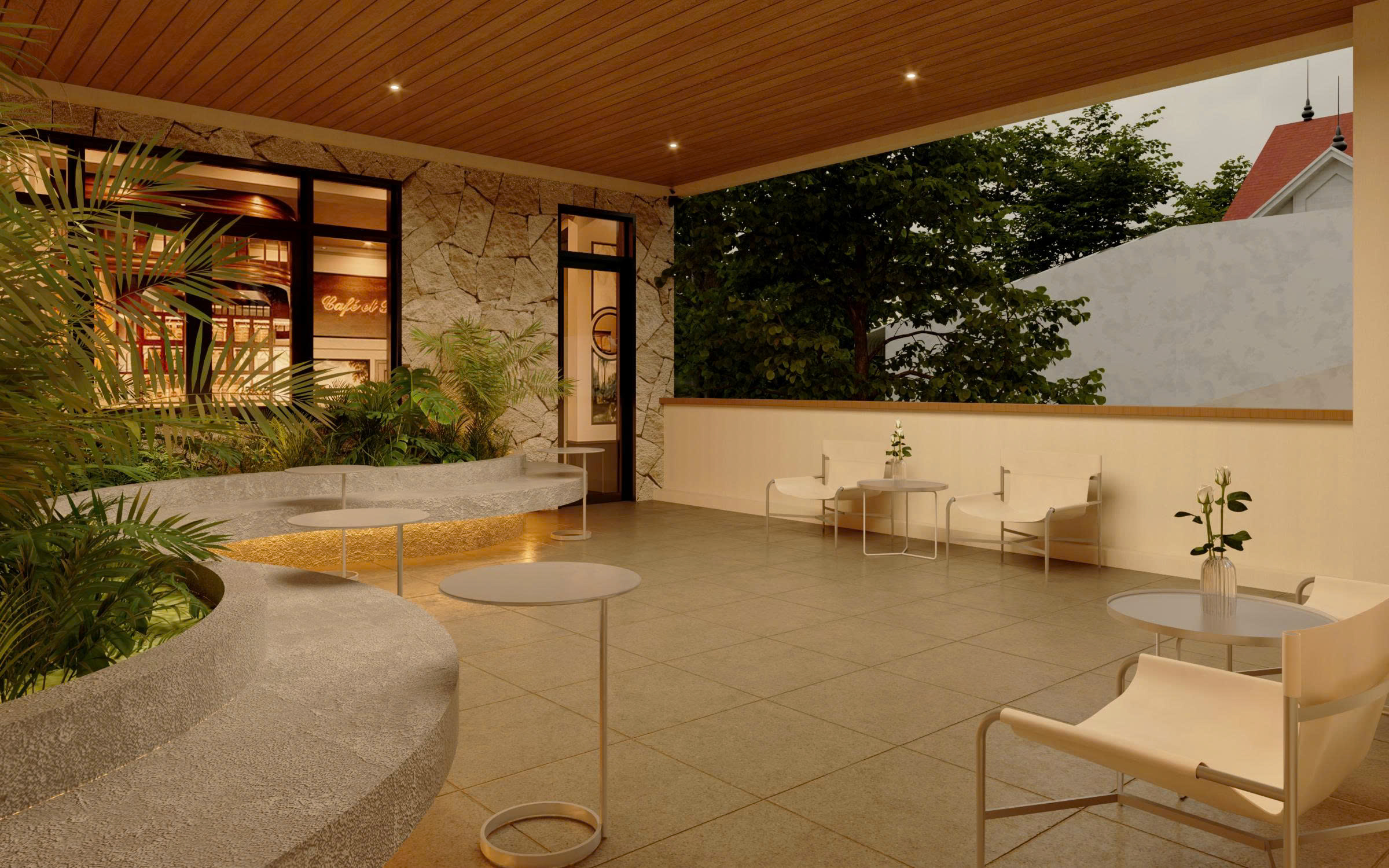 Không gian sân vườn không chỉ làm đẹp, mà còn tác động mạnh đến cảm xúc. Âm thanh của nước chảy, ánh sáng nhẹ và mùi gỗ ẩm hòa quyện cùng mùi cà phê rang tạo nên trải nghiệm đa giác quan – một trong những xu hướng thiết kế F&B hiện đại mà Ken Design luôn theo đuổi.